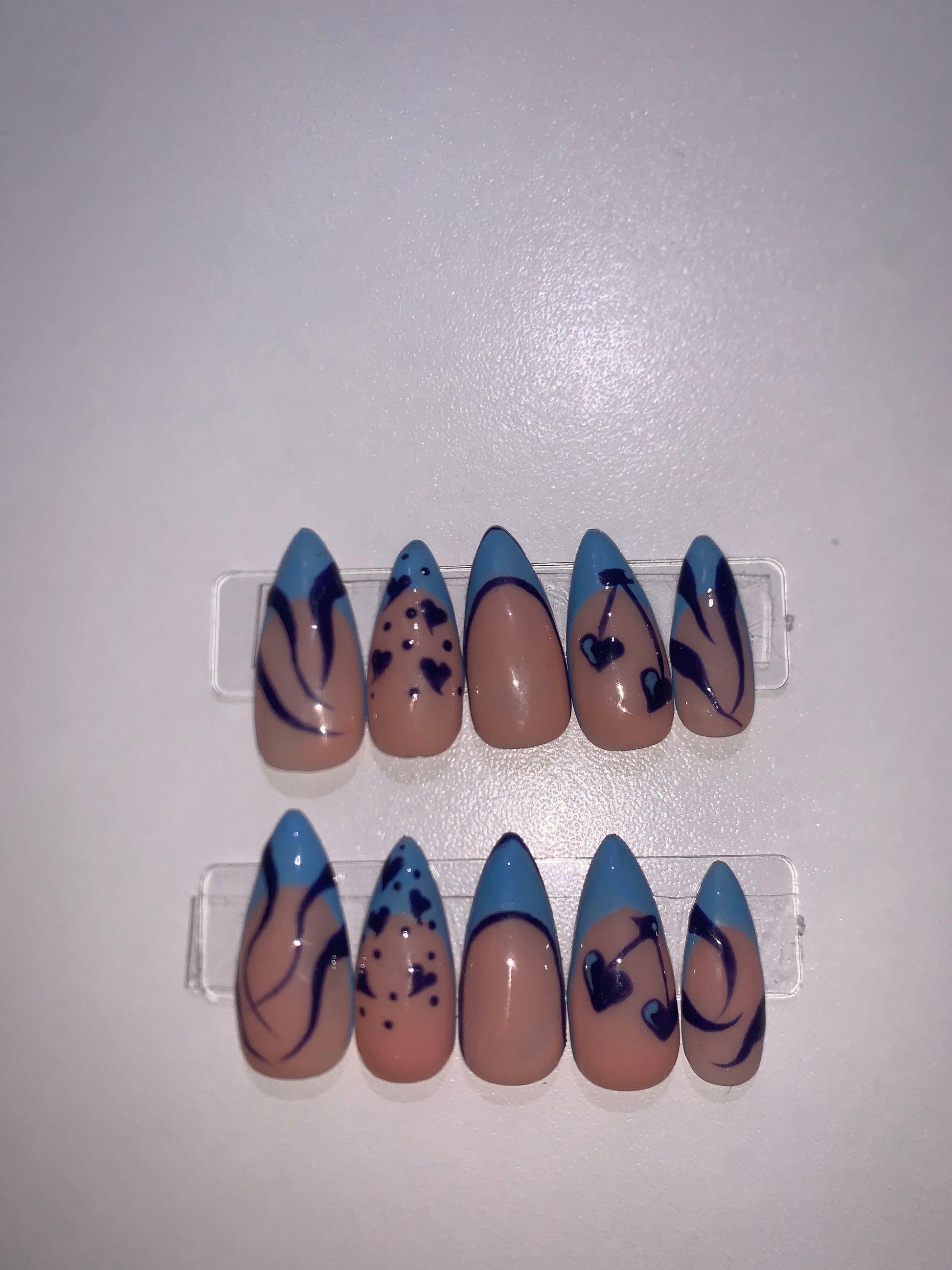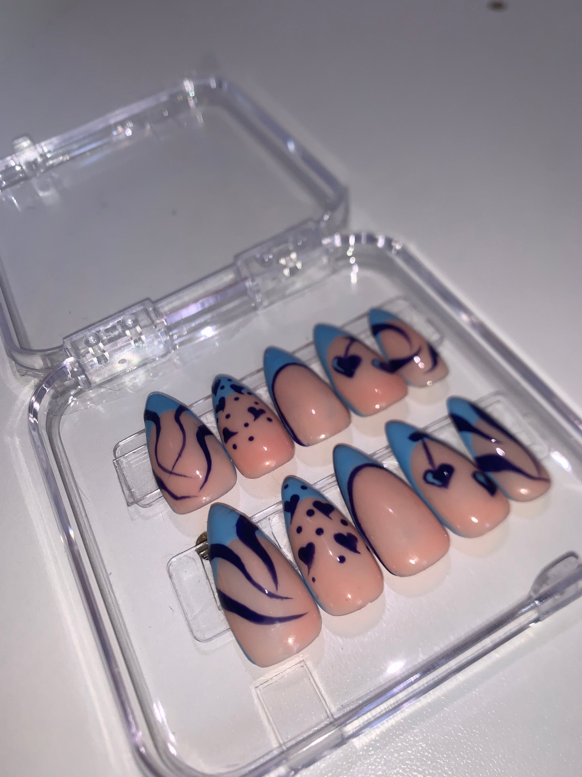 ongles PressOn, bleu ciel X marine, french 💙